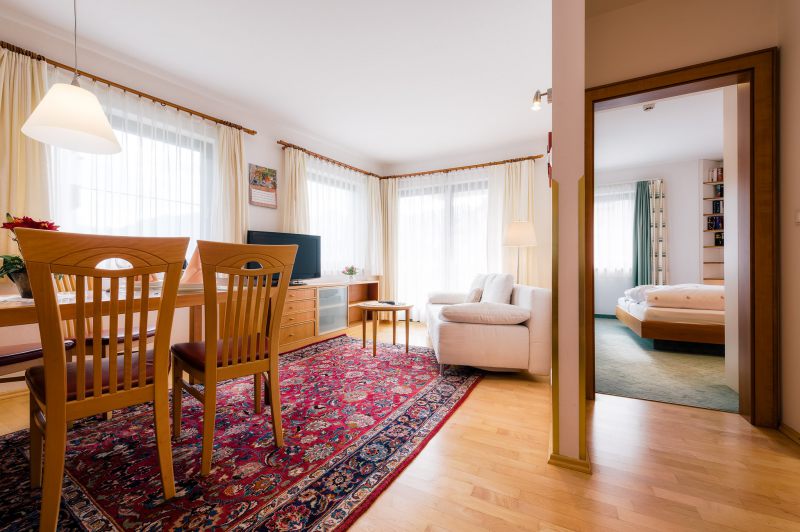 Všechny pokoje jsou vybaveny vanou/sprchou,WC,župany, kosmetickým zrcadlem, SAT-TV, telefonem, rádiem, trezorem a WIFI A: pokoj Standard Typ III pro 2 osoby s dvojlůžkem (18 m²)B: rodinný pokoj Classic s balkonem pro 2-4 osoby - dvoulůžkem a gaučem pro 2 děti do 12 let (26m2)C: suite Comfort Komperdell, balkon pro 2-3 osoby - o dvou oddělených místnostech, balkonem na jih a 1 dalším lůžkem pro 1 osobu (25m2)D: suite superior Lazid, balkon - pro 2 - 4 osoby - dvě místnosti - manželská postel a 2 x gauč pro 1 + 2 osoby(26m2)