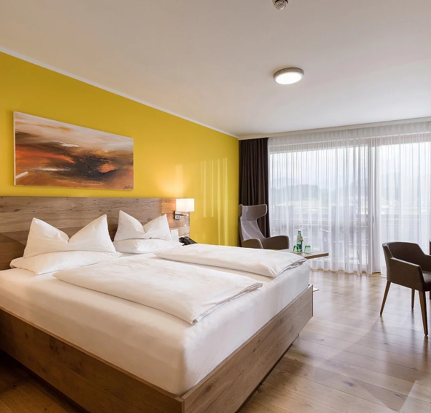 - 21-25 m2, dvojlôžková, výhľad na hory, posteľná bielizeň, uteráky a matrace zo 100% organickej bavlny, sprcha, župan, papuče, sušič vlasov, minibar za poplatok, trezor, TV (satelitná TV), balkón