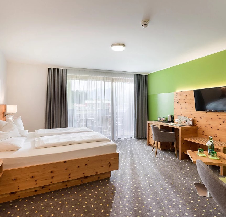 - 21-25 qm, Doppel, Bergblick, Bettwäsche, Handtücher und Matratzen aus 100% Bio-Baumwolle, Dusche, Bademantel, Badeslipper, Haartrockner, Minibar kostenpflichtig, Safe, TV (Sat-TV), Balkon