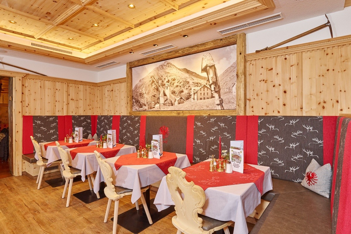 - Hauptrestaurant „Restaurant Café Tyrol“: Küche: regional, à la carte, Reservierung notwendig, gegen Gebühr, saisonabhängig, täglich, mit Terrasse, Kinderhochstuhl