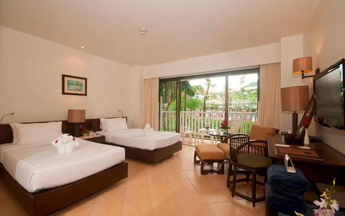 Pre max. 3 osoby, Vonkajší priestor: Balkón, TV kanály: angličtina, Telefón na izbe, vaňa, sprcha, Veľkosť izby: cca 37 m2, Prístelka: štandardná posteľ, Typ podlahy: dlažba, Denné upratovanie, 1 spálňa, Maximálny počet dospelých: 2, Maximálny počet detí: 1, Výhľad do záhrady, Počet kúpeľní: 1, Počet toaliet: 1, Možnosť prípravy čaju a kávy, Klimatizácia: Individuálna klimatizácia