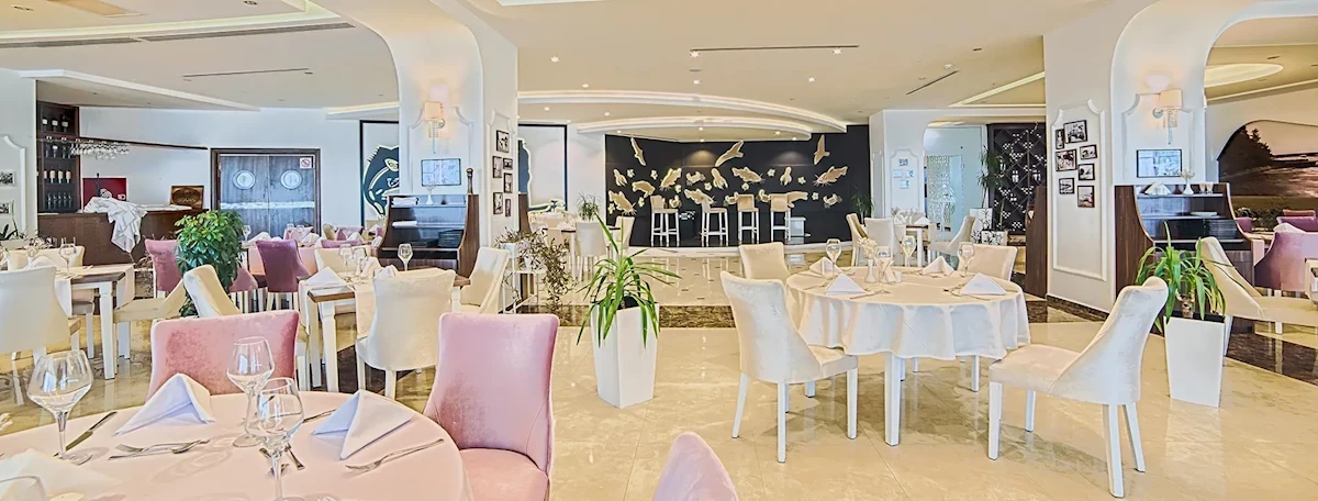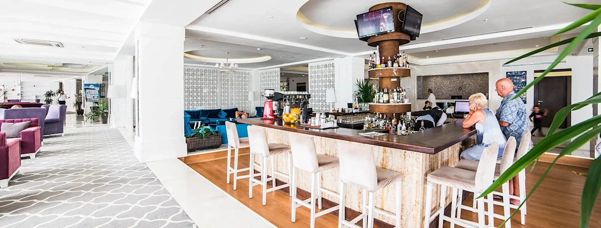 Recepcja 24h, 4 windy. Duży lagunowy basen odkryty typu infinity ze słodką wodą, brodzik dla dzieci, basen wewnętrzny, bezpłatne leżaki i parasole przy basenach i na plaży. Atrakcje dla dzieci: aquapark ze zjeżdżalniami (ok. 10 o różnej wielkości dla dorosłych i dzieci czynny sezonowo w zależności od pogody). Atrakcje dla dorosłych: boisko do siatkówki plażowej, centrum SPA, aquapark ze zjeżdżalniami (ok. 10 o różnej wielkości dla dorosłych i dzieci).Restauracje: restauracja główna z tarasem zewnętrznym i widokiem na jezioro, restauracja a la carte (płatna), beach bar (płatny), lobby bar, aquapark bar (płatny). Pozostałe informacje: sklep, bankomat.Internet