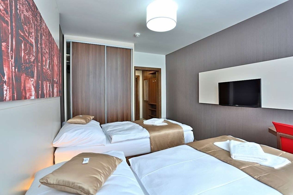 Ve dvoulůžkových a jednolůžkových pokoji exclusive s vlastním sociálním zařízením (sprchou), TV, fénem, kosmetickým zrcátkem, trezorem, minibarem, telefonem, připojením k internetu přes Wi-Fi, župany s papuči.