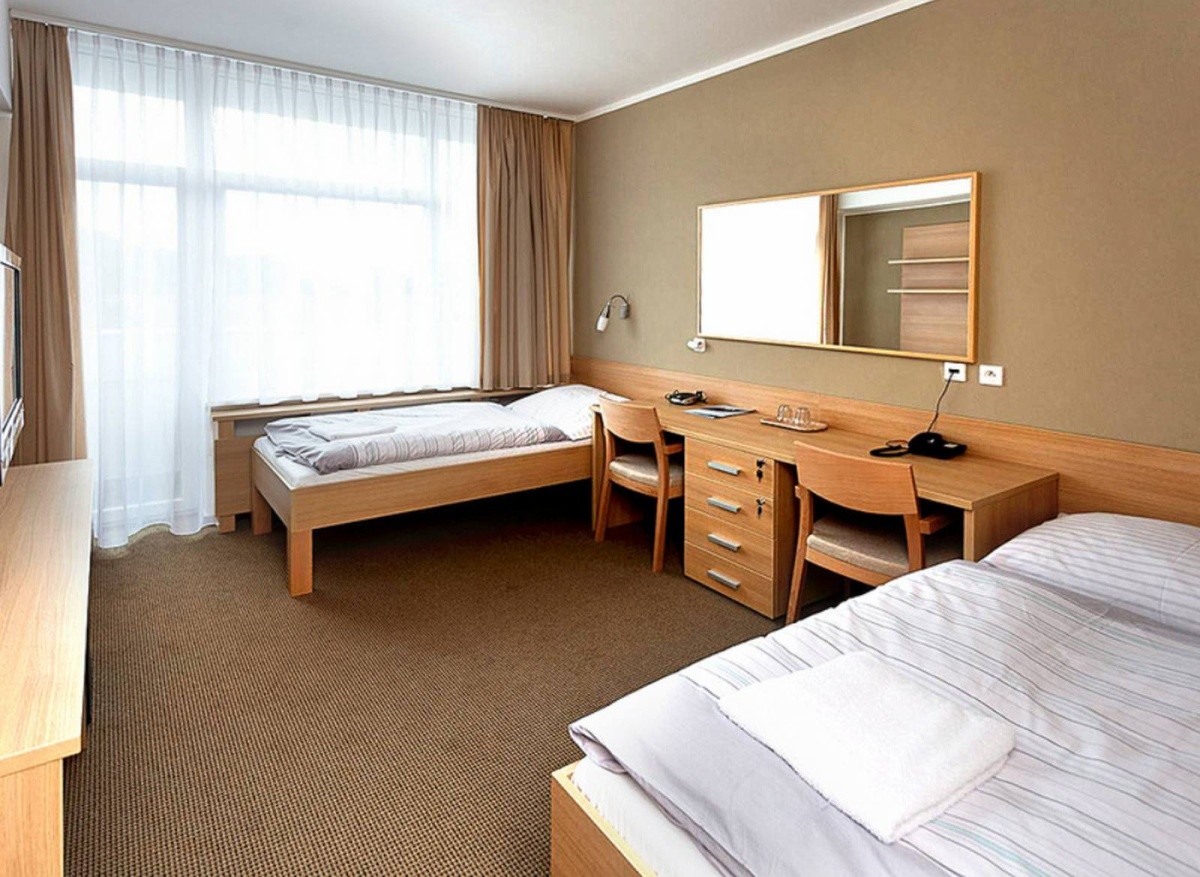 Vybavení pokojů: TV / SAT, Wi-Fi připojení, rádio, telefon, lednička, varná konvice, trezor, fén, WC, sprcha.