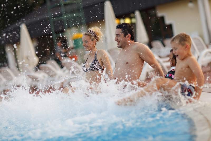 Vodní dobrodružství v mnoha bazénech: Hostům hotelového komplexu je k dispozici vodní park Lázní Banovci s vnitřním, pěti venkovními bazény a dětským bazénem s vodopády, skluzavkami, podvodními masážemi, vířivkami a prameny a světelnými a zvukovými efekty. Bazény jsou s běžnou nebo teplejší termální vodou. Možnost FKK koupání v letních měsících.
