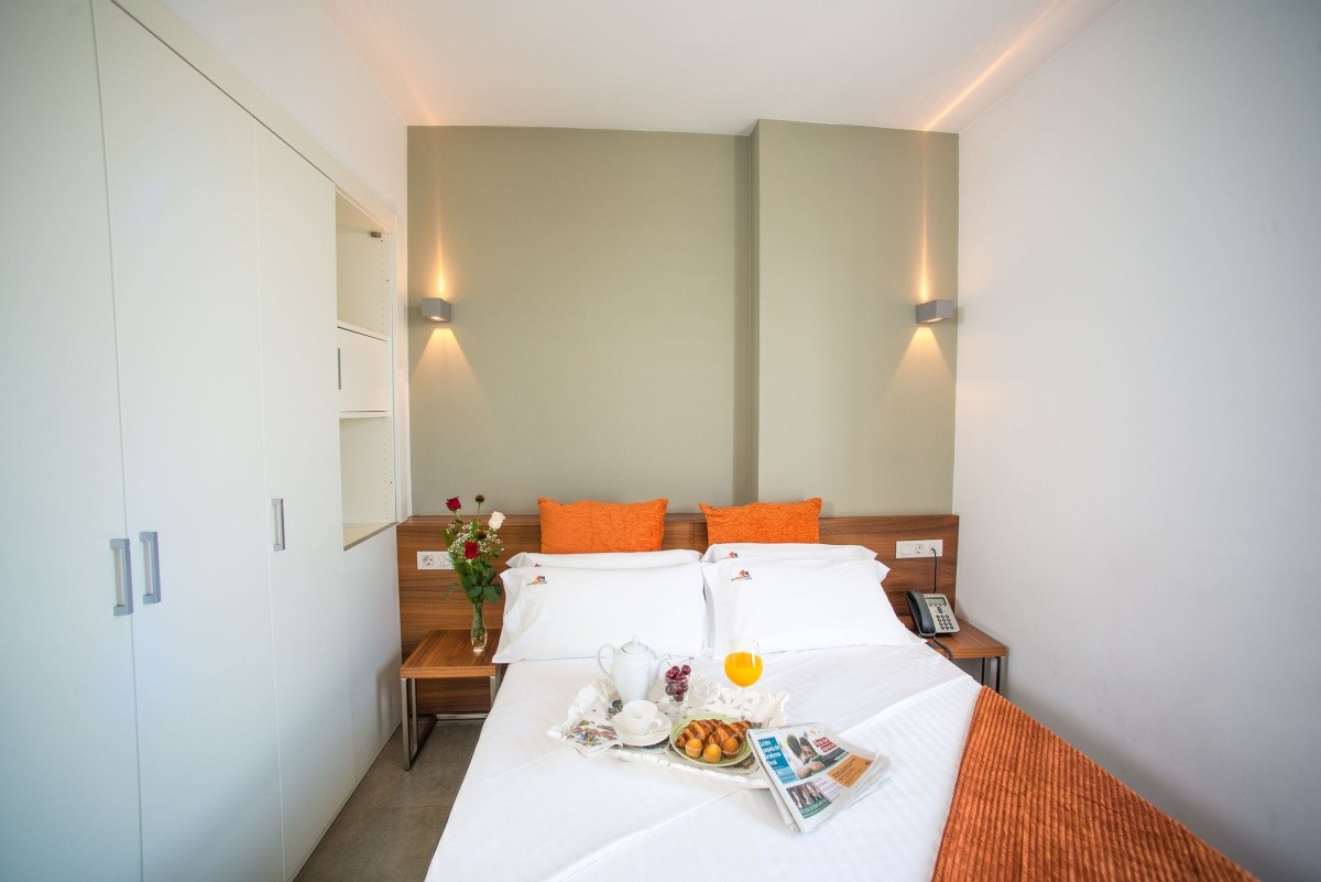 Klimatizovaný hotel má 21 pokojů. Do všech poschodí lze vyjít po schodech nebo pohodlně vyjet výtahem. Je zde úschovna zavazadel, hotelový sejf, vícejazyčný personál, autopůjčovna, transfer-servis, pokojová služba a detektor kouře. Ve společných prostorách se mohou hosté přes WiFi připojit k internetu. Na rezervační přepážce vám rádi pomůžeme s výběrem a rezervací výletů Objekt má celou řadu zařízení pro handicapované. Jsou zde i různé obchody. Hosté mohou zaparkovat v garáži nebo na parkovišti.Ubytování