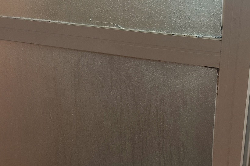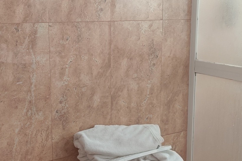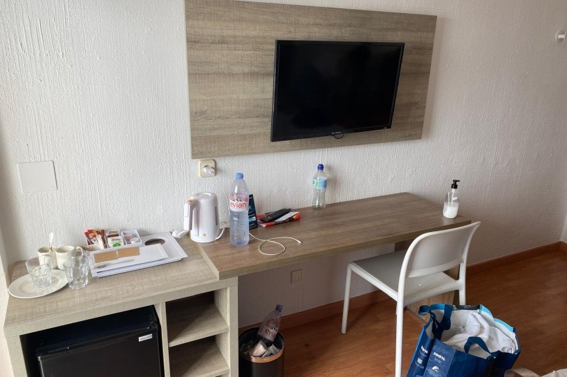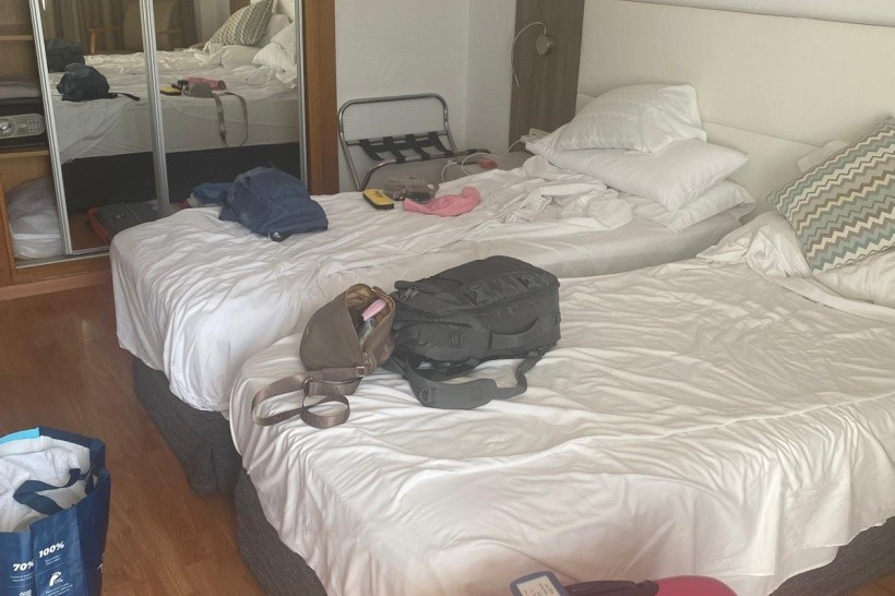 Tenké stěny, poměrně malý pokoj, chybějící vybavení. Výhled na záliv, ale žádný výhled na bazén, protože pokoj se nacházel nad spodní částí budovy, která byla zastíněna.