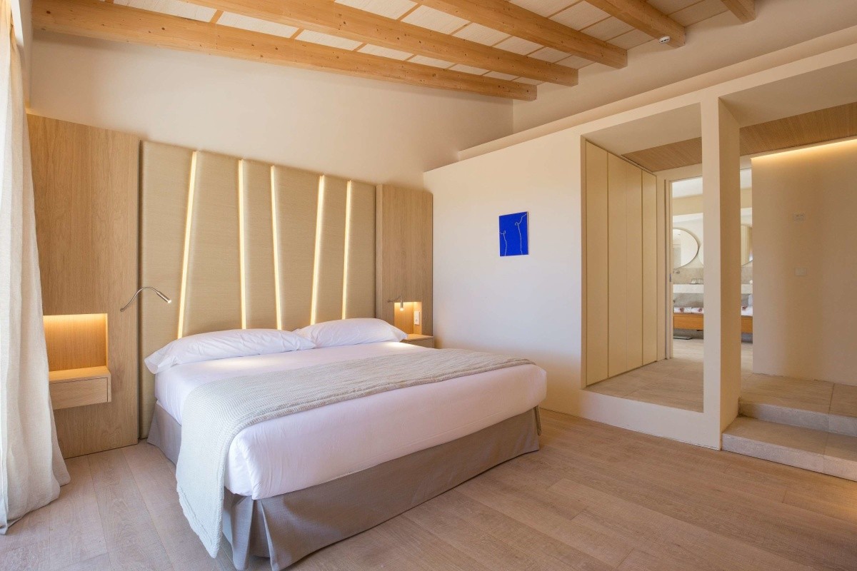 Die Zimmer: Die 30 großzügigen Suiten sind in hellen Naturtönen gehalten mit Holzfußboden, Sitzecke, Terrasse mit Daybed und Innen-Patio. Durch die bodentiefen Fenster bietet sich ein wundervoller Blick auf die Natur und teilweise auf das Meer. Ausgestattet mit großem Bad, separater Regendusche, freistehender Badewanne, Außendusche, Föhn, Bang Olufsen LCD-Sat.-TV, Telefon, WLAN (ohne Gebühr), Safe, Minibar, Klimaanlage.