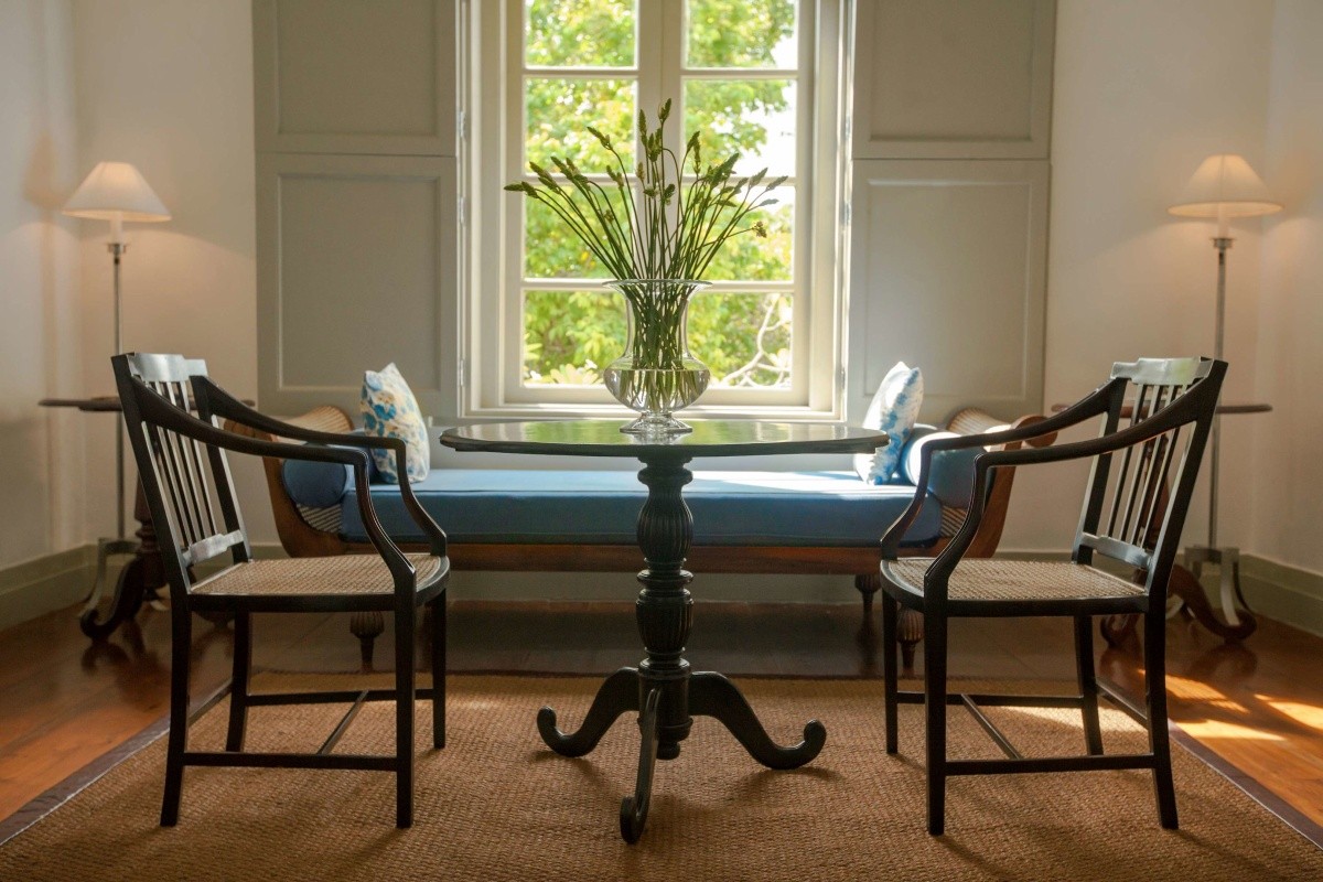 Die 28 Zimmer und Suiten sind geschmackvoll im Kolonialstil eingerichtet und mit Antiquitäten ausgestattet. Sie verteilen sich auf verschiedene Gebäudeflügel und verfügen über Bad mit freistehender Badewanne, separater Dusche, Bademantel, Föhn, Klimaanlage, Minibar, Schreibtisch und Essbereich.