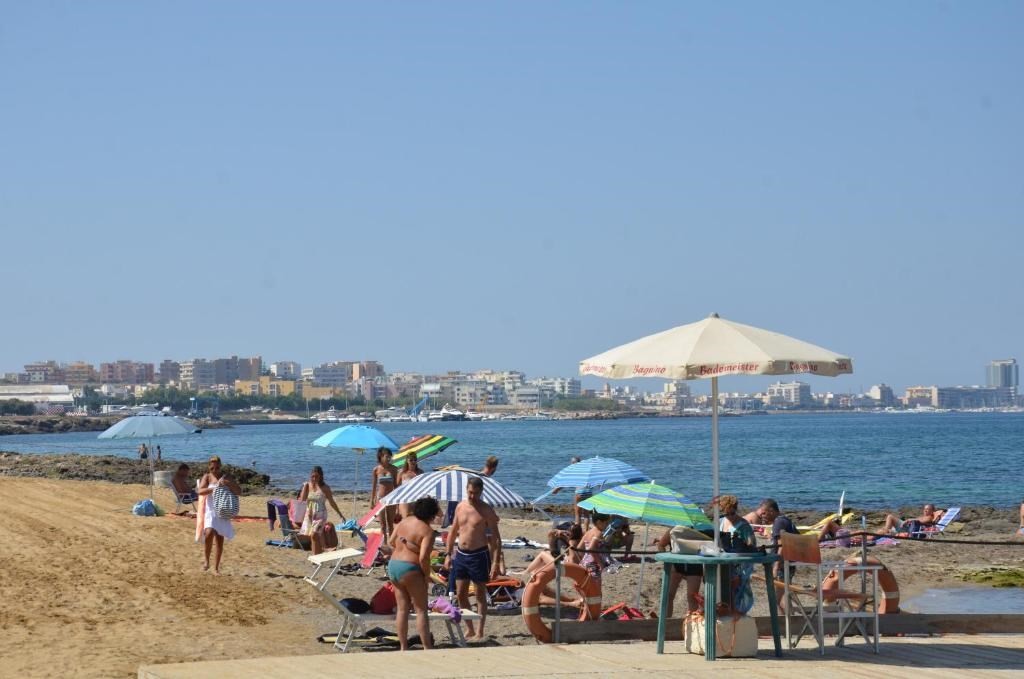 menší písečná pláž cca 200 m (přístupná podchodem), lehátka a slunečníky za poplatek