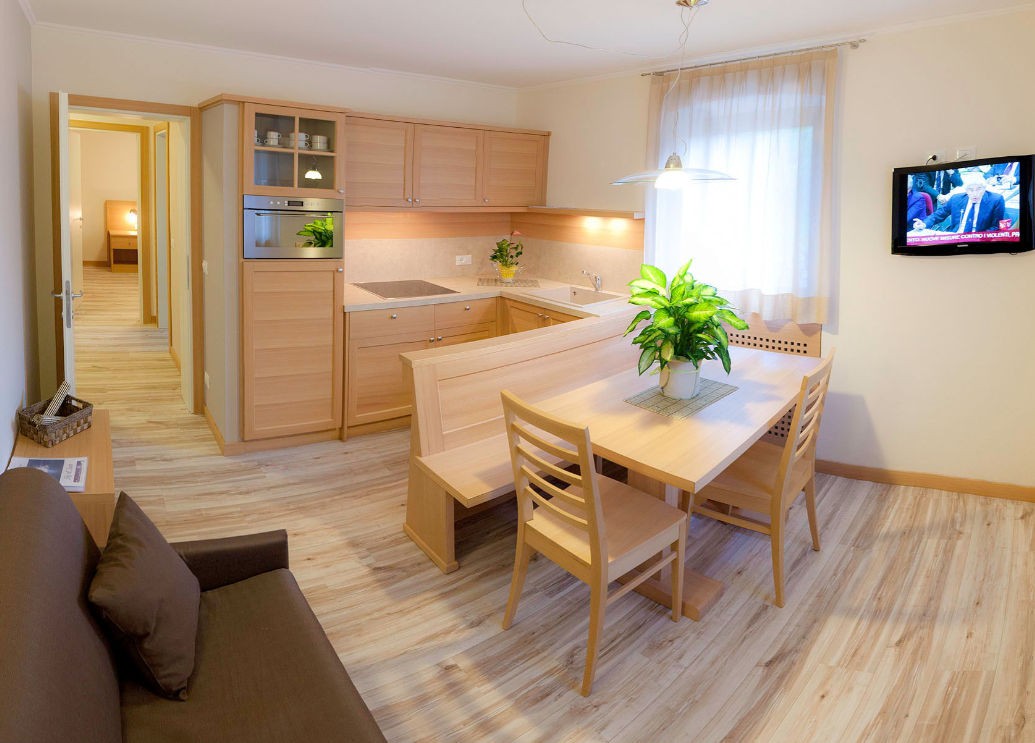 moderně zařízené apartmány s výhledem na jezero, vždy s kuchyňským koutem, mikrovlnkou, kávovarem, TV, koupelnu a WC.