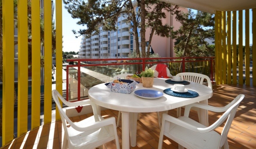 Apartmánový dům pouhých 100 m. od pláže, s výtahem a vyhrazeným parkovištěm. Všechny apartmány jsou velmi dobře zařízené a mají velké kryté balkony.