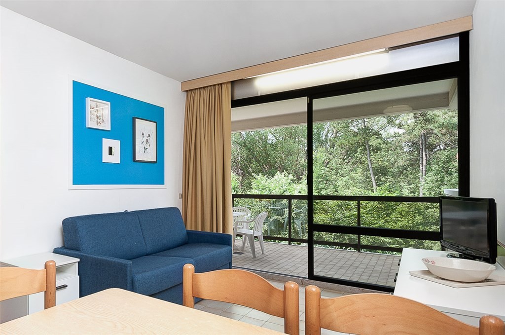 Bilo 4 - 1 ložnice s manželskou postelí a 1 samostatným lůžkem (může být i palanda), obývací pokoj s rozkládacím gaučem pro 1 osobu, kuchyňský kout, sociální zařízení, terasa