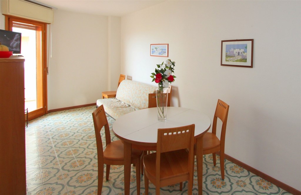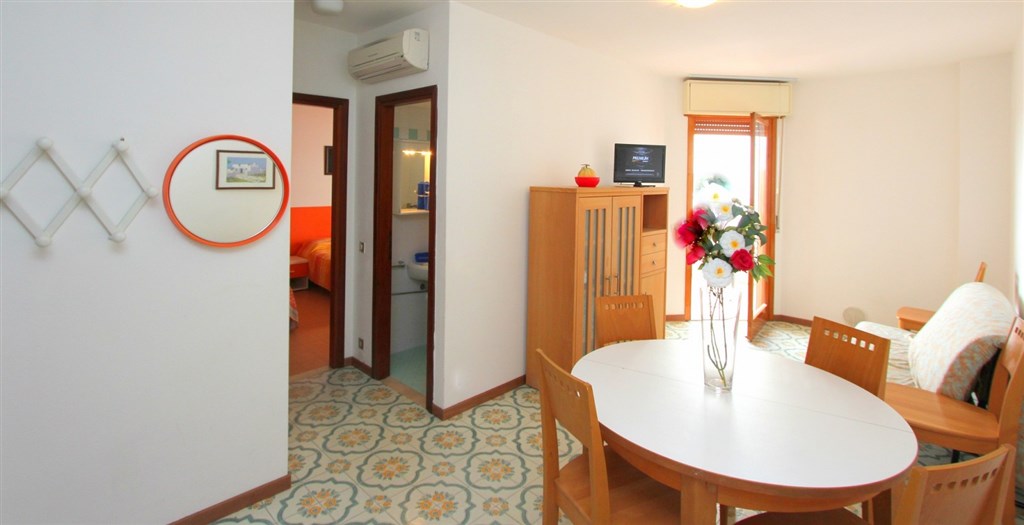 Bilo 4+1 - 1 ložnice s manželskou postelí a 1 samostatným lůžkem či přistýlkou, obývací pokoj s rozkládacím gaučem pro 1 či 2 osoby (možno i typ "šuplík"), a kuchyňským koutem, sociální zařízení, balkon, klimatizace