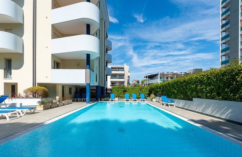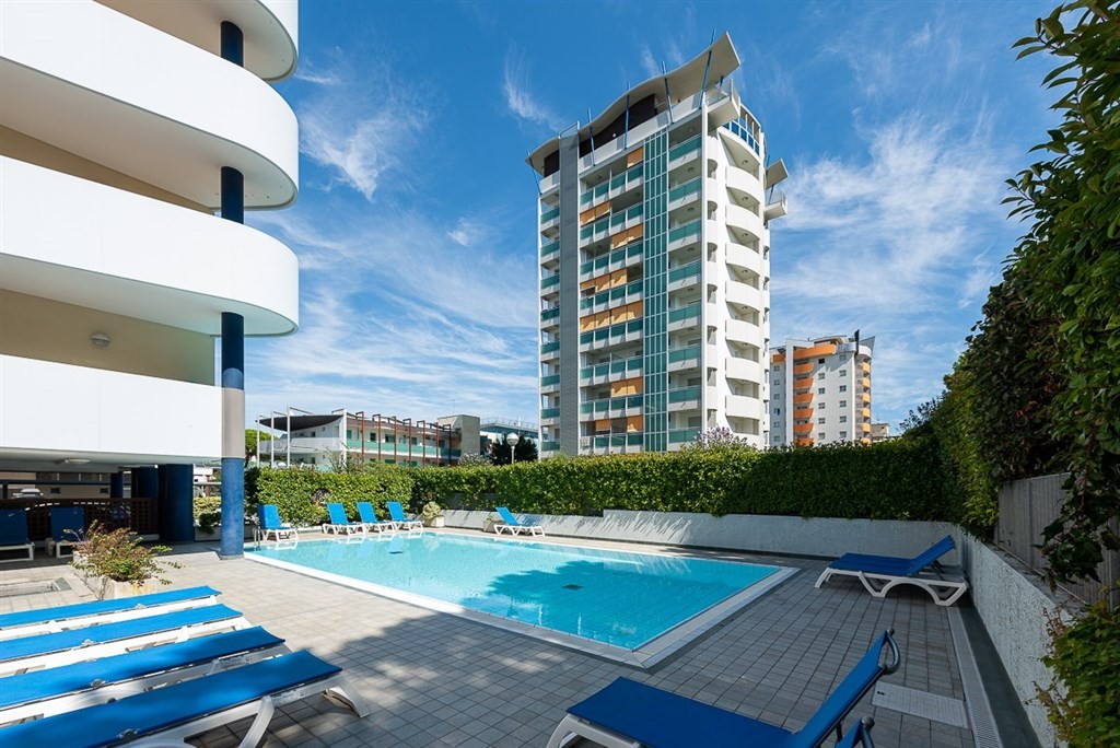 Apartmánový dům v blízkosti pláže, objekt se skládá ze 48 apartmánů rozložených na 5 patrech, je vybaven 2 výtahy, bazénem a terasou na slunění