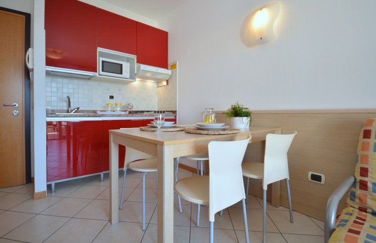 Izba priestranná, veľký balkón, vybavenie kuchyne dostačujúce, chladnička s mrazničkou i klimatizácia bez problémov. TV len talianske a nemecké programy ale dovolenie je o tom. Pozor na čajky, veru z balkónov či vidia keď tam nie ste:)