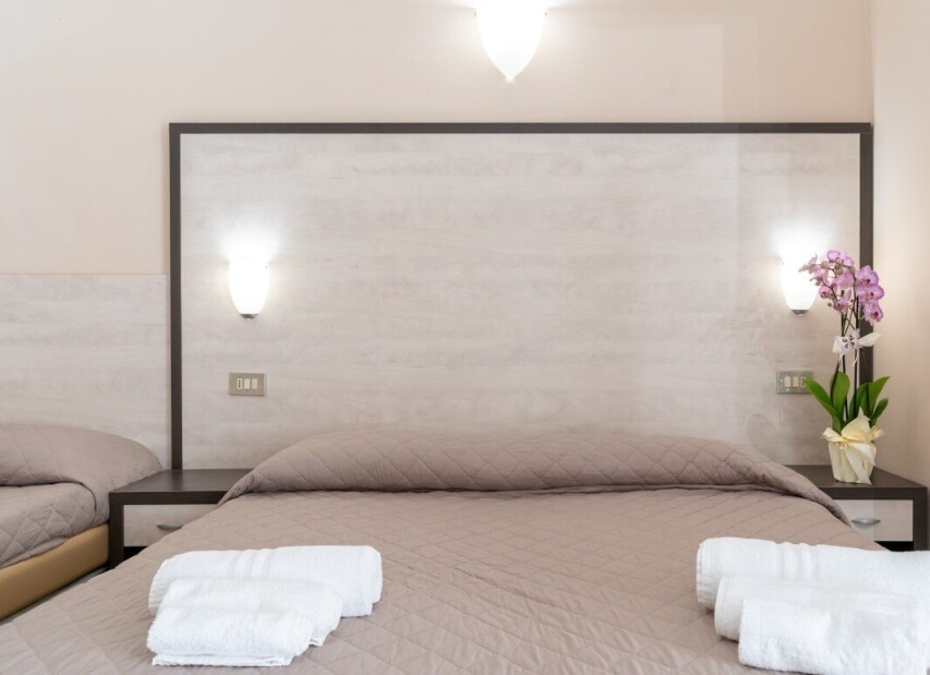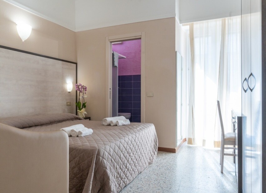 pokoj s manželskou postelí, případně se dvěma přistýlkami nebo patrovou postelí, hlavní budova, balkon, s výhledem na promenádu, klimatizace v ceně, TV, satelit, Wi-Fi na pokoji, trezor, sprcha, (sprchový kout), bidet, fén, parkoviště, cca 700 m od hotelu, nástupní dny sobota, min. pobyt standardně 7 nocí, příjezd od 15:00 do 20:00, odjezd od 08:00 do 10:00