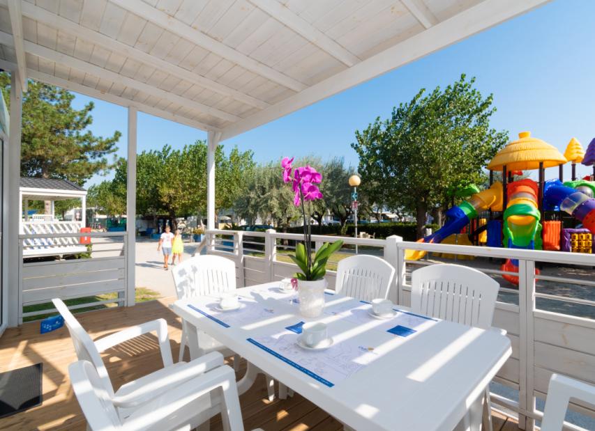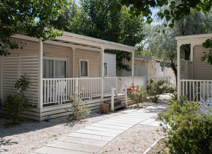 Mobilhomy jsou moderně vybavené, mají vlastní, dvojí sociální zařízení, klimatizaci / topení, mikrovlnnou troubu, TV/SAT (typologie Lodge Dog pouze TV), fén (kromě Lodge Comfort Dog) a zastřešenou terasu (typ Dog oplocenou). Typologie Lodge Superior má navíc myčku. Pes je akceptován pouze v typologii Dog. Ke každému mobilhome náleží 1 parkovací místo.