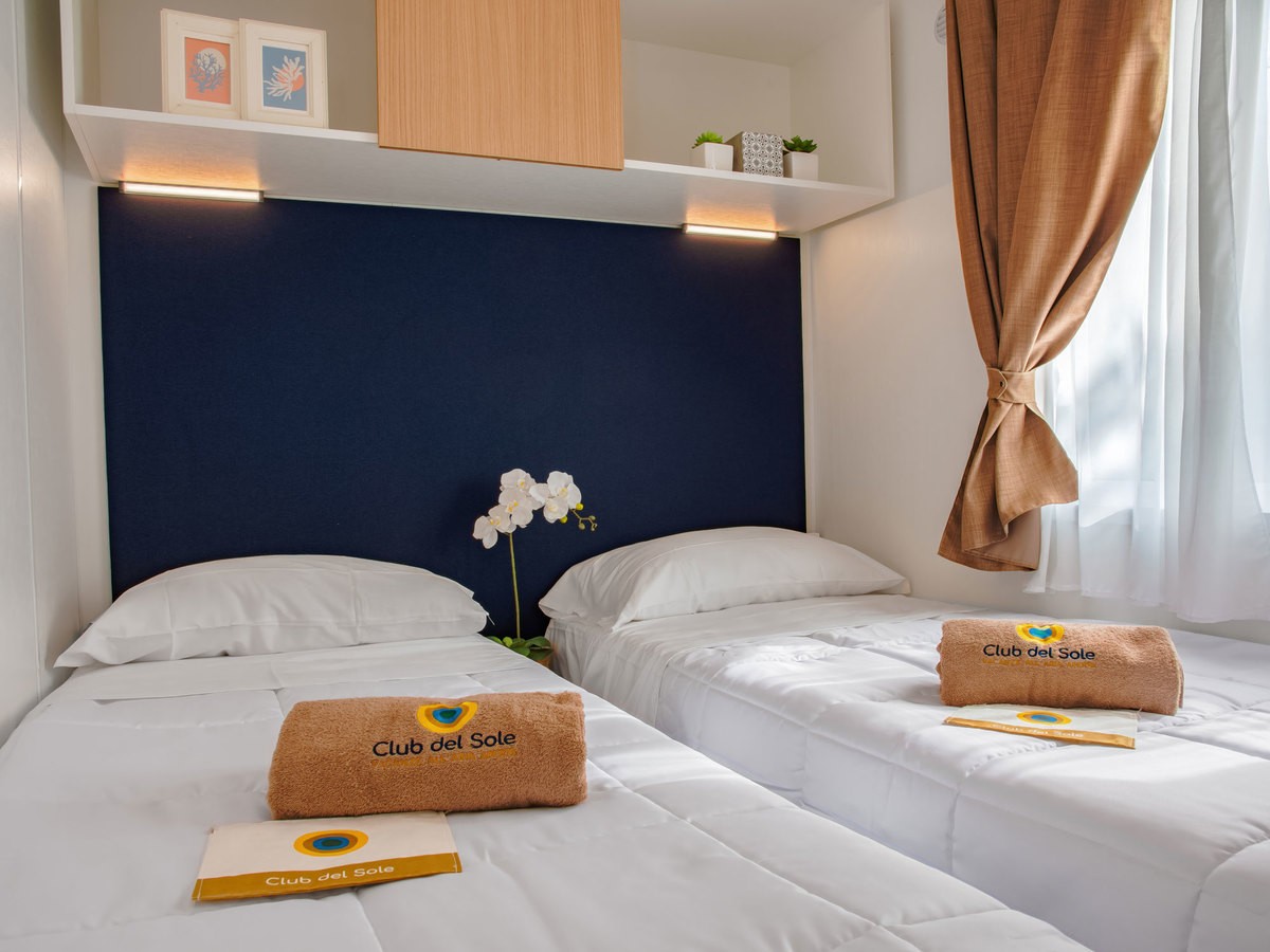 • Lodge Comfort (MHX1), Mobilný dom, cca 27 m², celkový počet izieb v tomto type izby: 3, rozloženie: obývacia izba, detská izba, 1 spálňa, 1 jednolôžko, 1 manželská posteľ, 1 detská posteľ, detská postieľka: cca 3 EUR na deň, nutná rezervácia a vyžiadanie, klimatizácia: bezplatná, individuálne ovládaná, kuchynský kút, chladnička: bezplatná, plynový/elektrický sporák, mikrovlnná rúra, umývačka riadu, kávovar na espresso, TV: satelitný TV, sprcha, WC, fén, terasa: veranda