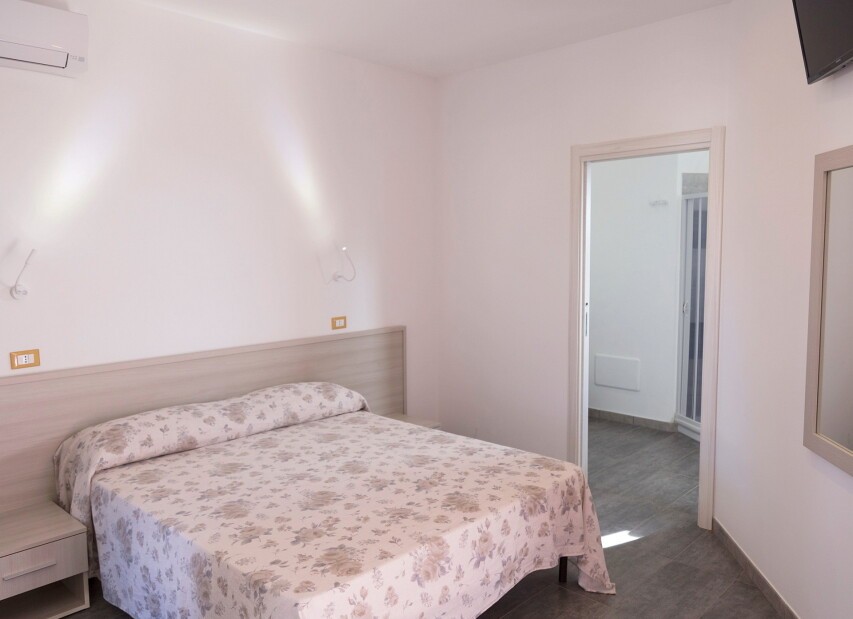 pokoj s manželskou postelí, přízemí nebo patro, balkon nebo terasa, výhled na moře, na vyžádání, boční, klimatizace v ceně, bez patrových postelí, TV, satelit, Wi-Fi na pokoji, trezor, kuchyňský kout, za příplatek 8€/den, na vyžádání, lednice, sprcha, (sprchový kout), bidet, fén, parkovací místo, nástupní dny kdykoli, min. pobyt v období do 04.07. a od 05.09. min. 3 noci, 04.07. - 08.08. a 29.08. - 05.09. min. 5 nocí, 08.08. - 29.08. min. 7 nocí, příjezd od 16:00 do 18:00, odjezd od 08:00 do 10:00