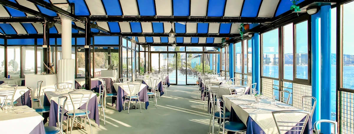 Vlastné stravovanie. Raňajky, polpenzia (ďalšia večera) alebo plná penzia (ďalší obed a večera) sú k dispozícii za príplatok. Voda a 0,25 litra vína na osobu sú zahrnuté v cene obeda a večere. Detské stoličky sú k dispozícii v reštaurácii. V neďalekom Soverate nájdete množstvo obchodov, barov a reštaurácií, ktoré podávajú typickú taliansku kuchyňu.