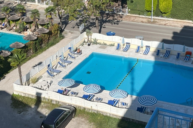 Součástí ceny byl i vstup na pláž. Pláž byla vzdálená pár minut chůze. K dispozici jsme měli slunečník a 2 lehátka. Každý den nám bylo na recepci přiděleno konkrétní číslo. Dále jsme měli přístup k hotelovému bazénu opět se slunečníkem.