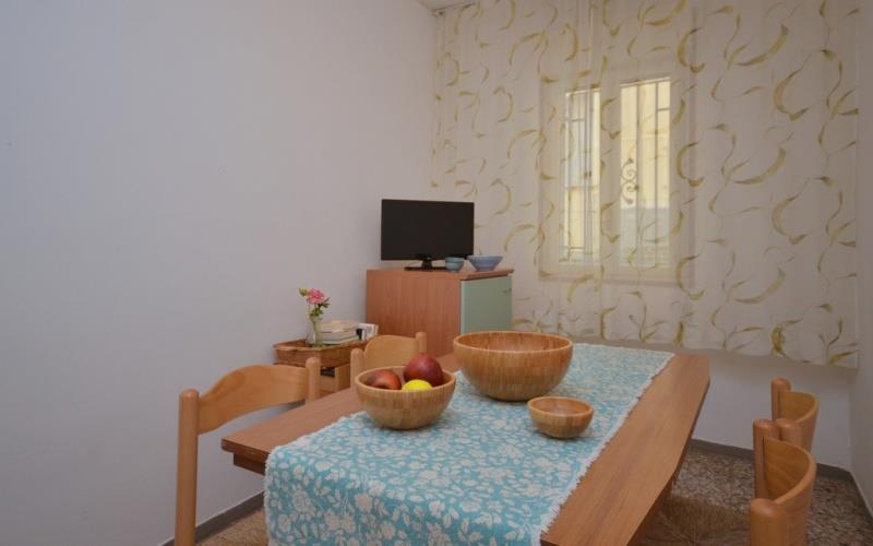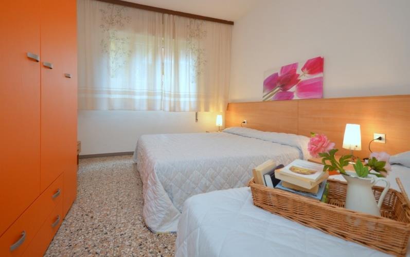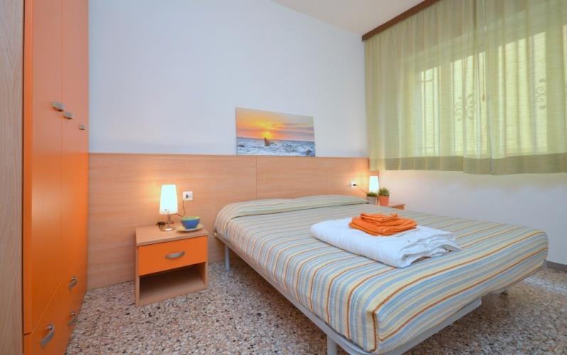 koupelna, plně vybavený kuchyňský kout, mikrovlnná trouba, kávovar, TV, klimatizace. Parkovací místo pouze apartmány pro TRILO C-6, QUADRI D-7 a QUADRI D-8, max. šířka auta 1,9 m. BILO B-4 (přízemí): max. 4 osoby, obývací pokoj s rozkládacím lůžkem pro 1 osobu, ložnice s s manželským lůžkem 1 samostatným lůžkem, bez parkovacího místa TRILO C-5 (přízemí): max. 5 osob, obývací pokoj, ložnice s manželským lůžkem a 1 samostatným lůžkem, ložnice se 2 lůžky, které je možné spojit; oddělená kuchyň, bez parkovacího místa TRILO C-6: max. 6 osob, obývací pokoj, 2 ložnice s manželským lůžkem a 1 samostatným lůžkem, terasa, venkovní parkovací místo v ceně (max. šířka auta 1,9 m) QUADRI D-7: max. 7 osob, obývací pokoj s rozkládací pohovkou pro 2 osoby, ložnice s manželským lůžkem, ložnice se 2 lůžky, které je možné spojit; ložnice s 1 lůžkem, terasa, venkovní parkovací místo v ceně (max. šířka auta 1,9 m) QUADRI D-8: max. 8 osob: obývací pokoj s rozkládací pohovkou pro 2 osoby, 2 ložnice s manželským lůžkem, pokoj se 2 lůžky, terasa, 1 parkovací místo v ceně, venkovní parkovací místo v ceně (max. šířka auta 1,9 m)
