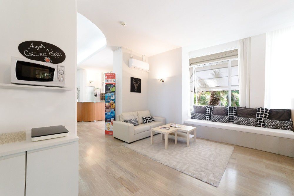 Hosté se zde mohou ubytovat ve dvou až čtyřlůžkových pokojích. Rodiny s dětmi mají k dispozici pokoj s manželskou postelí a palandou. Ke standardní výbavě patří klimatizace (za poplatek 7 Eur za noc), koupelna se sprchovým koutem nebo vanou, vysoušeč vlasů, satelitní TV, trezor a internetové připojení WIFI. Za příplatek lze objednat pokoje s částečným nebo frontálním výhledem na moře. Dětské postýlky nejsou k dispozici. Pokoje ve vyšších patrech jsou dostupné výtahem.