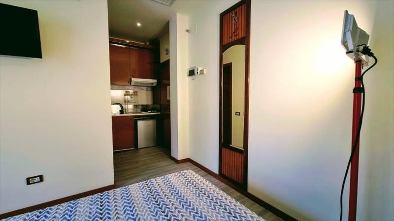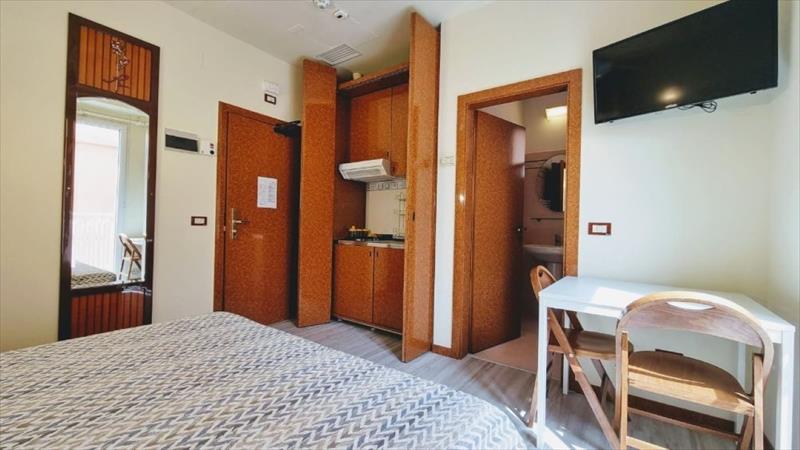 Miniapartmány pro 2 až 5 osob, také s balkonem, studia a dvoupokojové apartmány, vybavené veškerým komfortem: Kuchyňský kout s kompletním nádobím a příbory, lednice, koupelna se sprchou, fén, klimatizace, ložní prádlo a ručníky, LCD TV, výtah do patra.