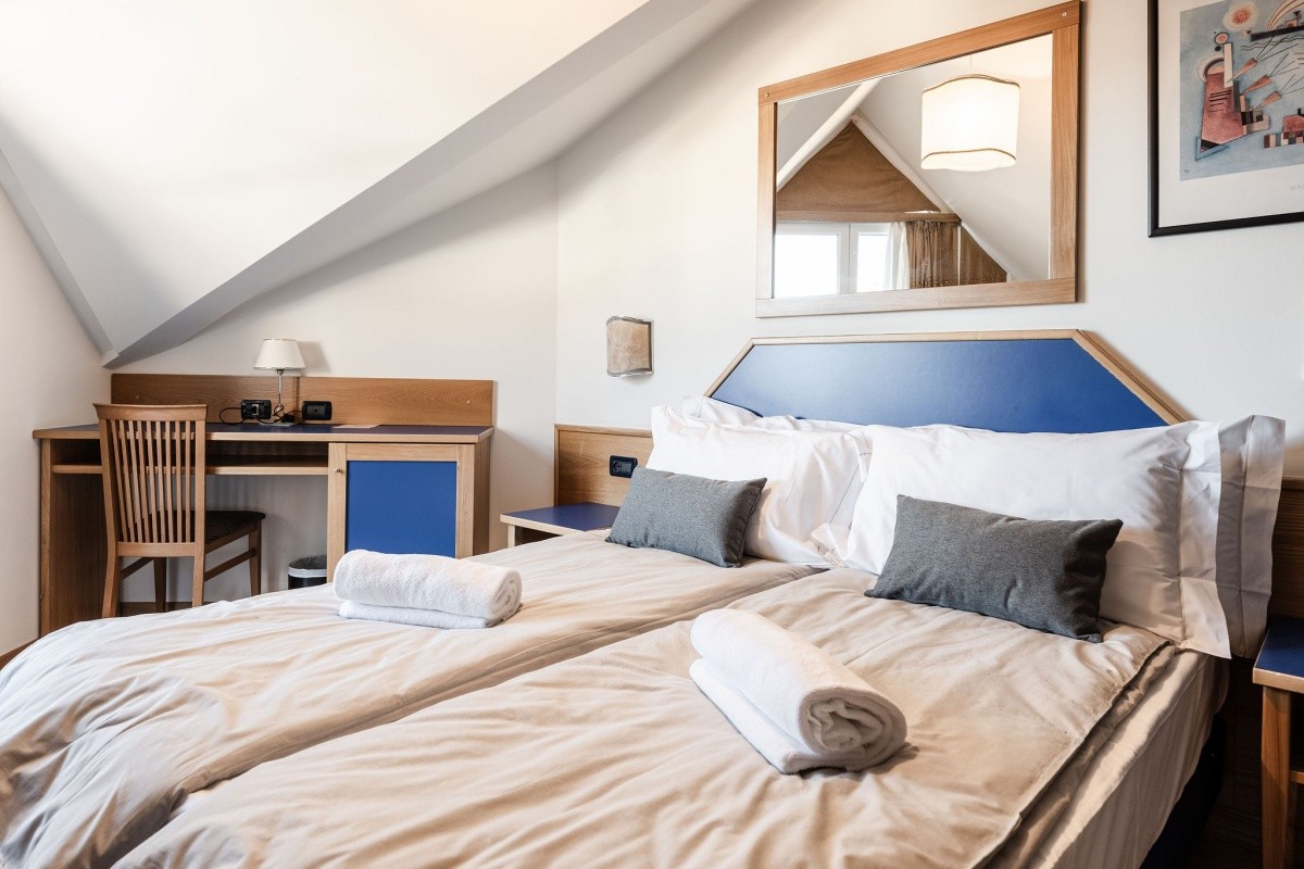 dvoulůžkové až čtyřlůžkové pokoje - vlastní sociální zařízení, balkón, TV, minibar, wi-fi připojení