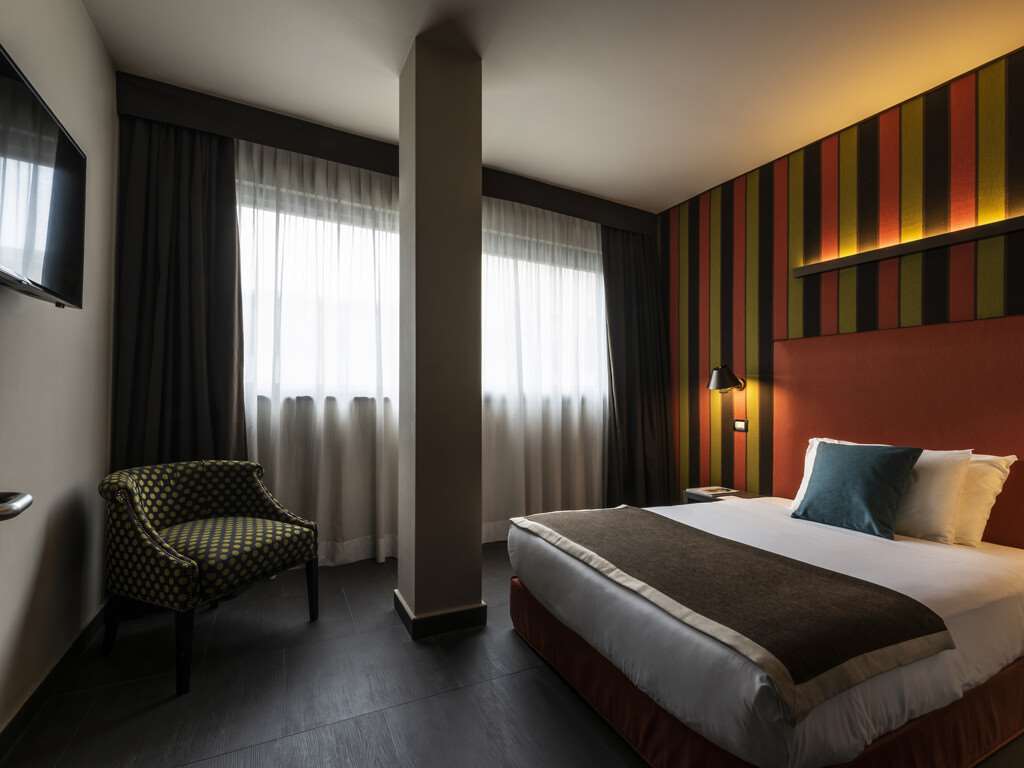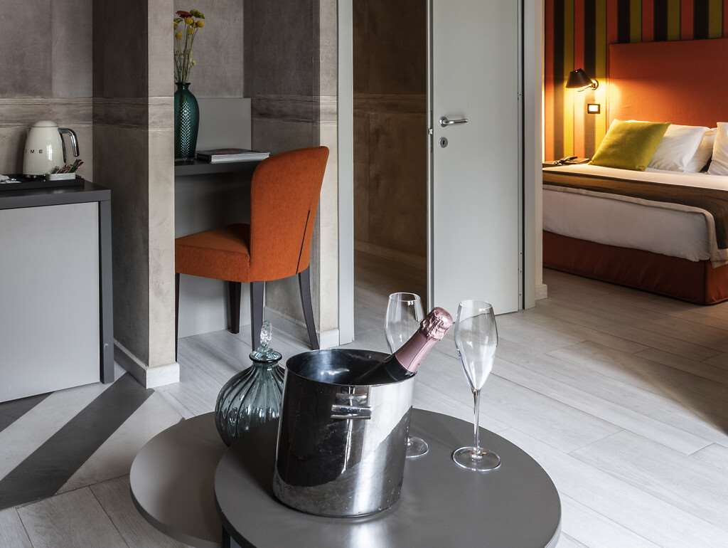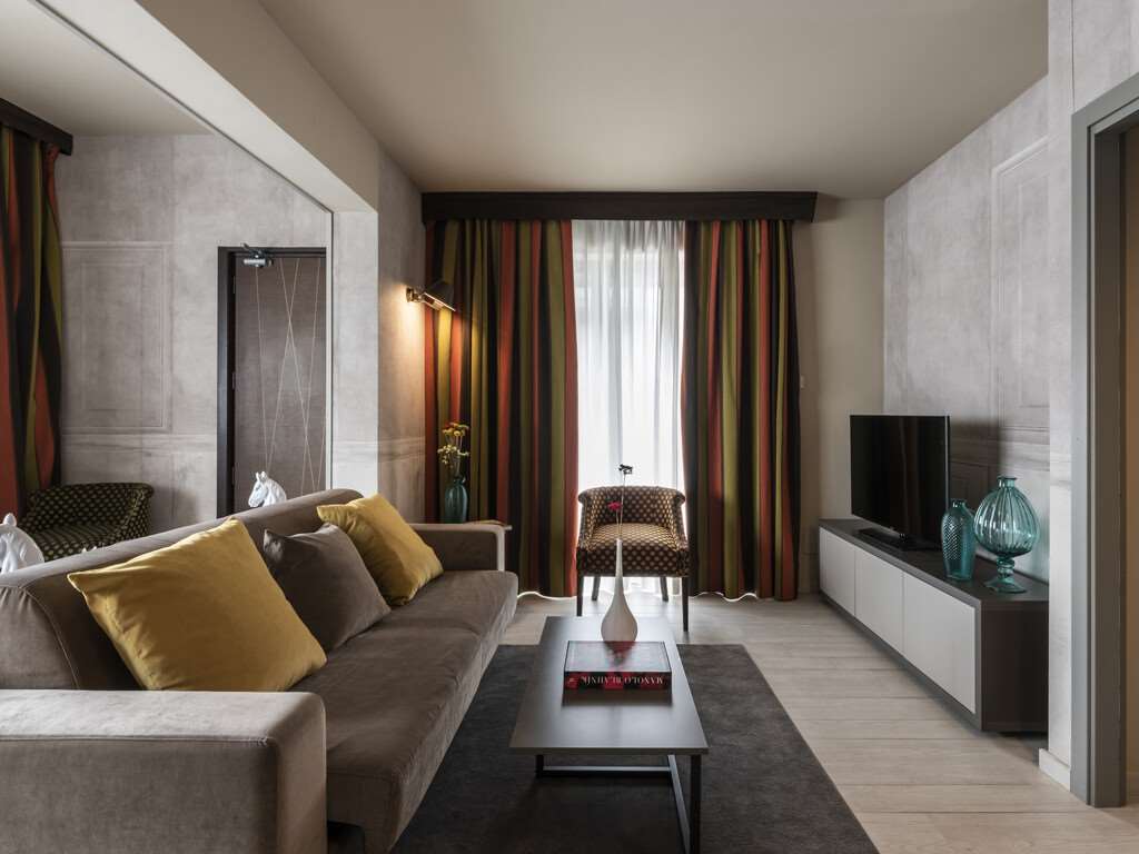 - Milano Suite (SUX2), apartmán, nefajčiarska izba, minimálny vek v izbe: 18 rokov, v hlavnej budove, výhľad do dvora, výhľad na mesto, cca. 37 - 50 m², posledná kompletná rekonštrukcia v roku 2025, posledná čiastočná rekonštrukcia v roku 2025, celkový počet izieb v tomto type izby: 2, dispozičné riešenie: kombinovaná obývacia izba/spálňa, 1 spálňa, 1 posteľ king, 1 rozkladacia pohovka, detská postieľka: bez poplatku, nutná požiadavka a rezervácia, klimatizácia: bez poplatku, kúrenie, podlaha: za poplatok, parkety, trezor, alkoholické nápoje bez poplatku, pohovka, trezor: bez poplatku občerstvenie, telefón, internet: WLAN/WiFi, televízia, izbová služba: denne, za poplatok, upratovacia služba, sprcha, WC, župan, papuče, fén, kozmetické zrkadlo, balkón alebo terasa