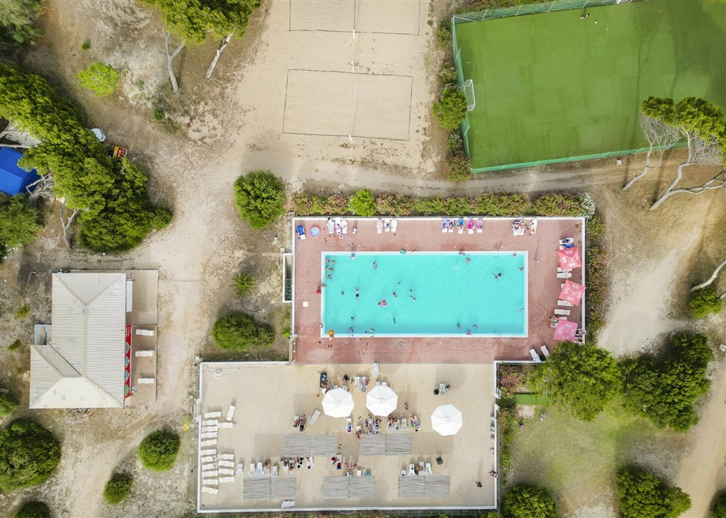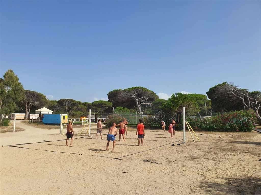 poloolympijský bazén s prostornou slunečnou terasou, lehátka a slunečníky, vybavené altány, bar bazénu, fotbalové hřiště, plážový volejbal a kurt na plážový tenis, ranní fitness