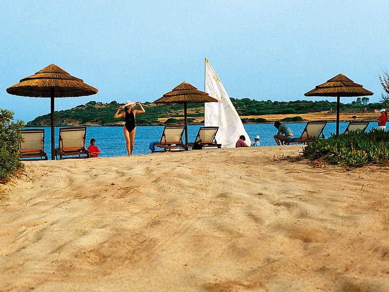 • Strand „Is Molas Beach Club“: Sand, flach abfallend, naturbelassen, privat, hoteleigen, Liegen: gegen Gebühr, Sonnenschirme: gegen Gebühr