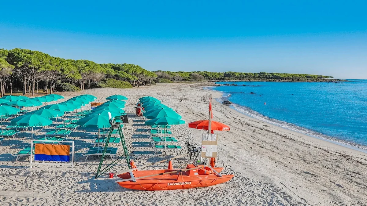 verejná pláž Spiaggia Li Cuppulaticca 300-500 m od hotela (v závislosti od ubytovania)