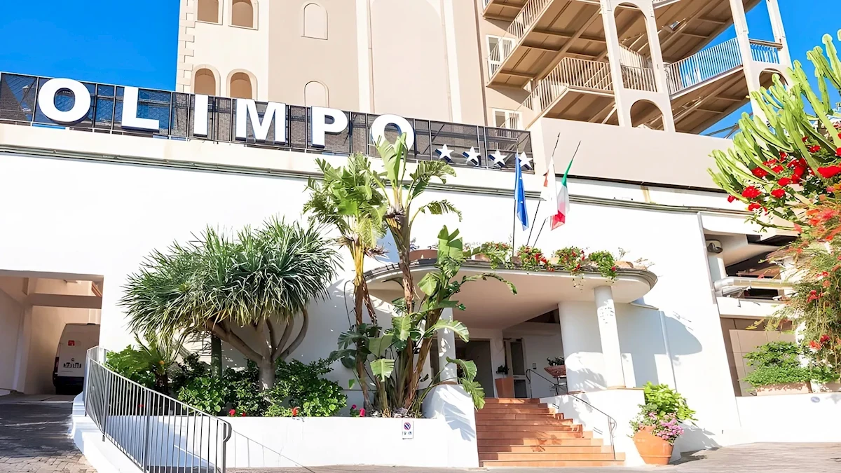 Romantický hotelový rezort disponuje 102 izbami, rozmiestnenými v štýlovej budove s krásnym výhľadom na pobreží. Klientom je k dispozícii priestranná vstupná hala s recepciou, trezory, turistickými informáciami, zmenárňou a lobby barom, výťah, hlavná reštaurácia, kaviareň, internetový kútik (za poplatok), práčovňa (za poplatok), spoločenská miestnosť so satelitnou TV, úschovňa batožiny, obchodík so suvenírmi, kongresová sála (kapacita 220 osôb, moderné audiovizuálna technika), vonkajší bazén s detskou časťou, snack bar pri bazéne, opaľovacia terasa (lehátka a slnečníky zadarmo) a parkovisko. Hostia môžu využívať služby moderného wellness centra v hoteli Olimpo (masáže, vírivka, solárium, sauny, vyhrievaný bazén).Ubytovanie