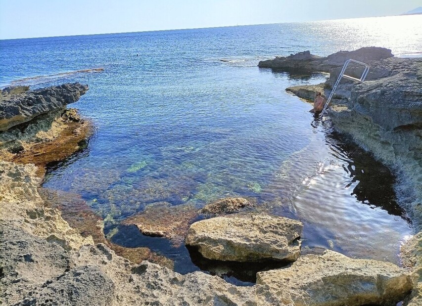 skalnatý vstup do moře, se soukromým dřevěným molem, soukromá k objektu