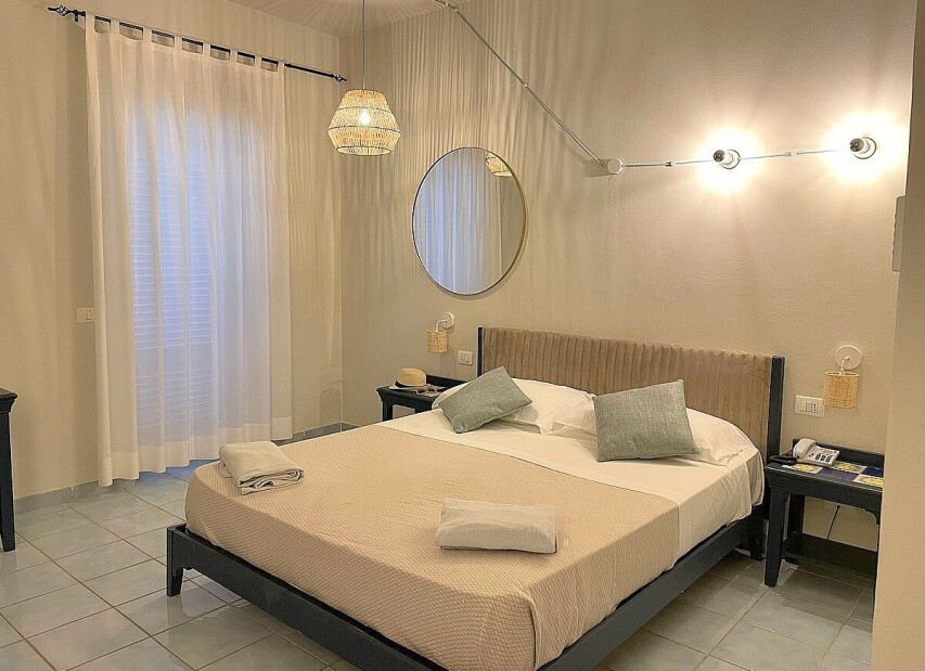 ložnice s manželskou postelí a s možností jedné nebo dvou přistýlek, přízemí nebo patro, terasa nebo zahrádka, mají pouze některé pokoje, bez balkonu, klimatizace v ceně, TV, Wi-Fi na pokoji, trezor, telefon, minibar, sprcha, bidet, fén, parkoviště, nástupní dny kdykoli, min. pobyt v období do 07.08. a od 29.08. min. 1 noc, 07.08. - 29.08. min. 5 nocí, příjezd od 16:00 do 20:00, odjezd od 08:00 do 10:00