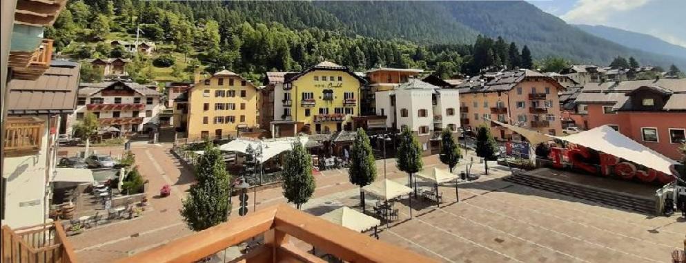 Apartmány najdeme v budově na centrálním náměstí města Cogolo, přímo na pěší zóně s dostupností všech služeb.