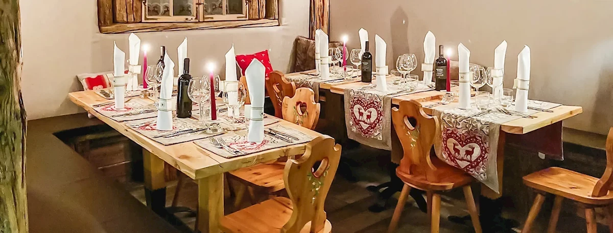 Stube: Tradičná drevená miestnosť dostupná na základe rezervácie (napr. na degustačné večere). Nápoje k obedu a večeri sú k dispozícii za príplatok.