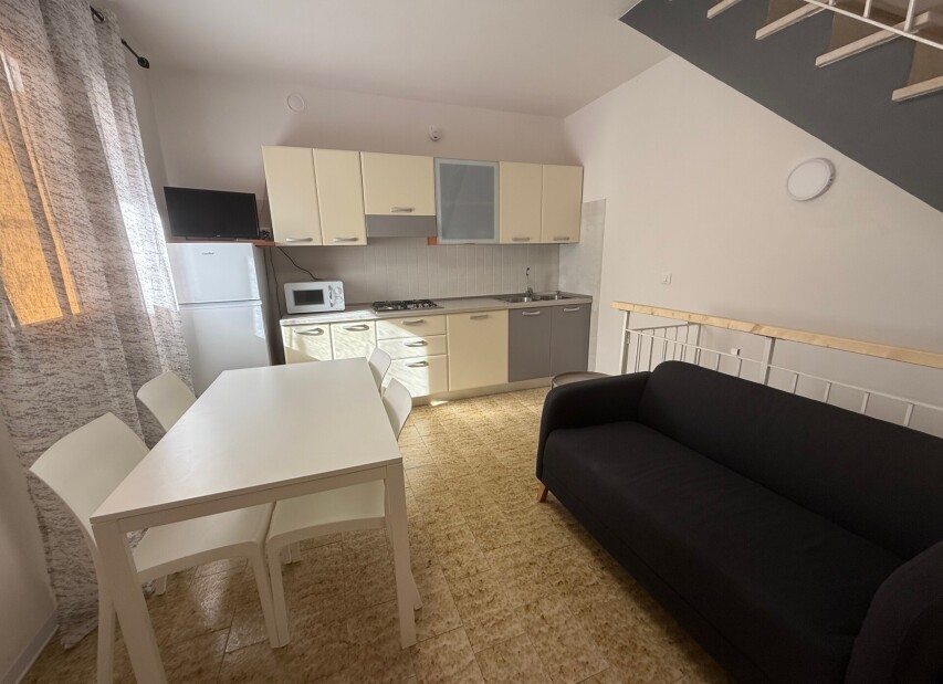 mezonet, přízemí / 1. patro, vnitřní schodiště, balkon, terasa, klimatizace volitelně, 35 €/týden, TV, pouze italské kanály, Wi-Fi na pokoji, pro max. 8 přístrojů, na vyžádání, 25 €/týden, lednice, samostatný mrazák, mikrovlnná trouba, na vyžádání, 10 €/týden, sprcha, bidet, zahradní nábytek, parkovací místo, nástupní dny v období do 05.06. a od 05.09. kdykoli, 06.06. - 04.09. sobota, min. pobyt v období do 06.06. a od 05.09. min. 6 nocí, 06.06. - 05.09. min. 7 nocí, příjezd od 16:00 do 19:00, odjezd od 08:00 do 10:00