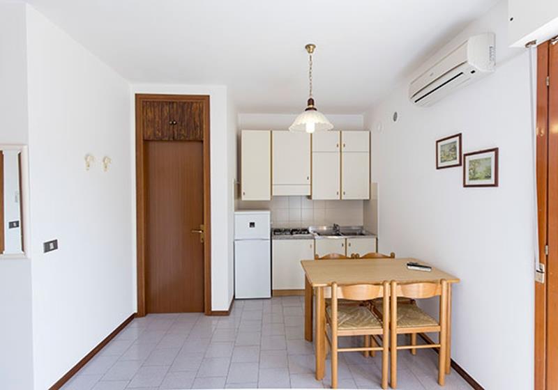 apartmány jsou standardně zařízeny, vždy s vybaveným kuchyňským koutem, SPR+WC, TV, klimatizace, balkon.