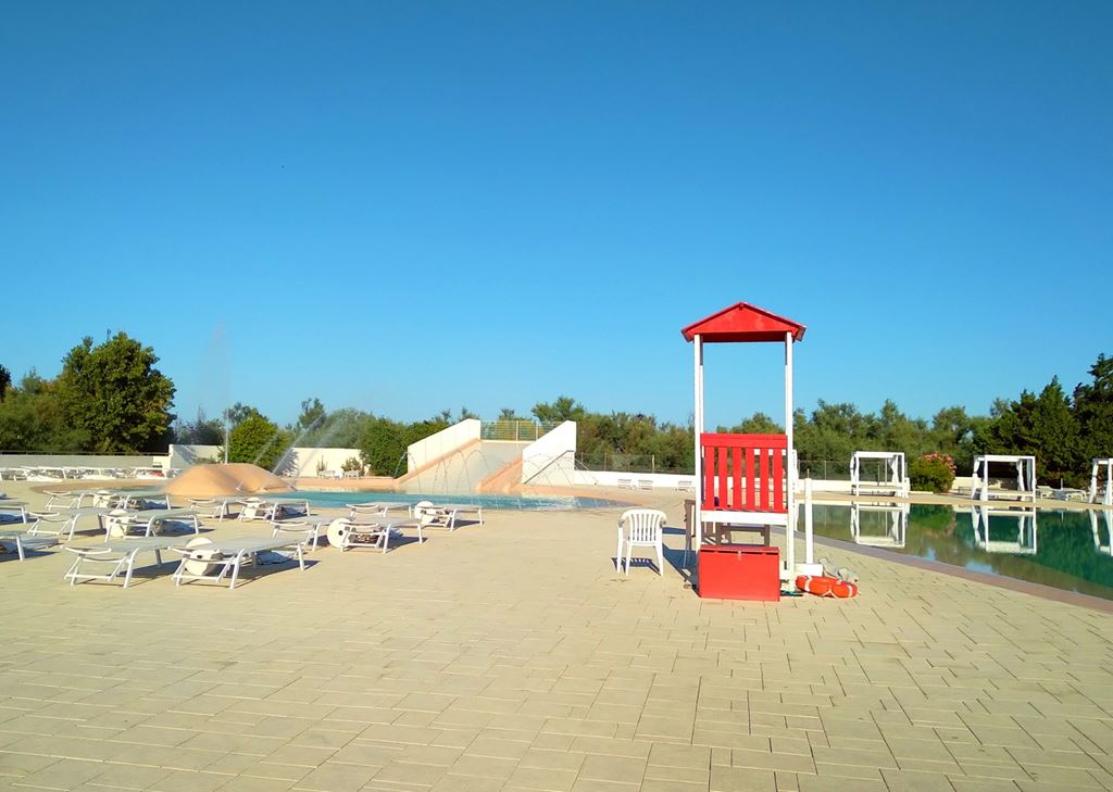 V rezortu se nachází dva velké bazény, jeden se skluzavkou a druhý s vířivkou a slunící plochy s lehátky a slunečníky. Na bazénu poblíž mobilních domků je vyžadována plavecká čepice.