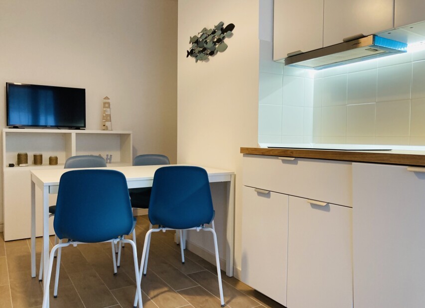 Apartmán v 1. patře je nedávno zrekonstruovaný, má vlastní sociální zařízení, TV, mikrovlnnou troubu, kávovar, myčku, pračku, klimatizaci a terasu.