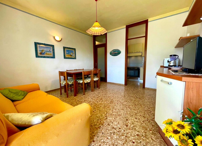 mezonet, přízemí / 1. patro, vnitřní schodiště, zahrádka, oplocená, klimatizace volitelně, 70 €/týden, bez patrových postelí, TV, Wi-Fi na pokoji, cca 25 €/týden + vratná kauce za router 50 €, nutno zajistit na místě cca 50 m od ubytovací kanceláře, na vyžádání, lednice, trouba, sprcha, bidet, pračka, zahradní nábytek, parkovací místo, nástupní dny sobota, min. pobyt standardně 7, příjezd od 16:00 do 19:00, odjezd od 09:00 do 10:00 při pozdějším odjezdu pokuta 30 €