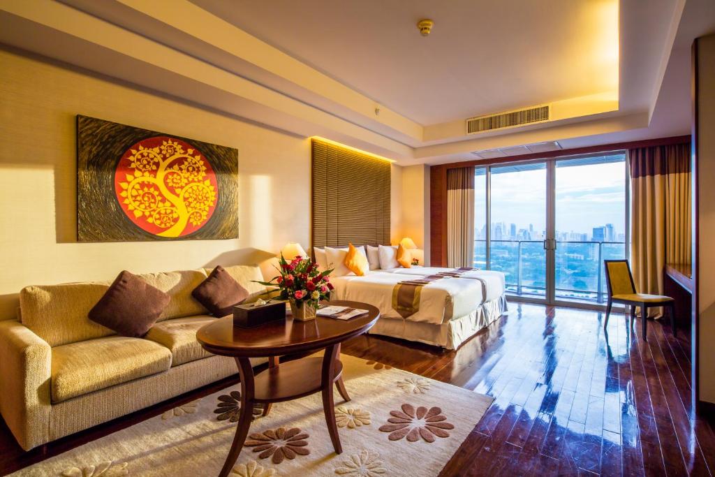 Poloha a okolie Hotel má ideálnu polohu v srdci mesta medzi Ratchadapisek Road a Sukhumvit Soi 16, kde si hostia môžu užívať tesnú blízkosť bangkokských systémov hromadnej dopravy BTS a MRT, ako aj hlavných diaľnic. Okrem svojej ideálnej polohy má hotel výhľad na najväčšie jazero v bangkokskom lesoparku Benjakitti, ktoré susedí s Národným kongresovým centrom kráľovnej Sirikit.