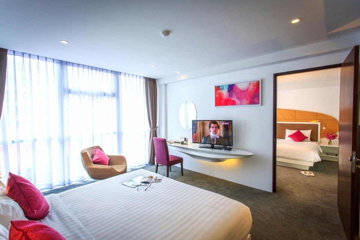 K dispozícii sú dvojlôžkové superior izby. Moderný a luxusne vybavené izby (cca 27m2) sa nachádza v 2. až 5. poschodí a sú vybavené sprchou / WC, fénom, kúpacím plášťom, papuče, telefónom, Wi-fi zdarma, trezorom, TV, DVD prehrávačom, pripojením pre iPod, minibarom za poplatok, kávovarom, klimatizáciou a výhľadom na mesto.Strava