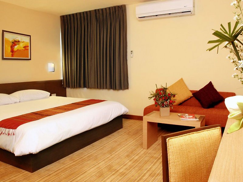 Lage & Umgebung Das Hotel liegt im Pratunam Viertel von Bangkok. In der näheren Umgebung finden Sie lokale Märkte, internationale Einkaufszentren, das zentrale Geschäftsviertel und zahlreiche Unterhaltungsmöglichkeiten. In etwa 5 Gehminuten erreichen Sie den Suanpakkad Palast, den Suansantipab Park und den BTS Sky Zug (Victory Monument Station). Vom Hotel aus haben Sie einen direkten Zugang zur Autobahn. Diese bietet Ihnen eine zügige Verbindung zum internationalen Don Muang Flughafen in ca. 30 km Entfernung.