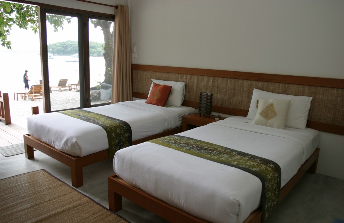 Štýlovo zariadené, vzdušné dvojlôžkové izby s možnosťou prístelky sú vybavené sociálnym zariadením (sprcha, toaleta, fén), telefónom, klimatizáciou, stropným ventilátorom, satelitný TV, minibarom a alebo terasou (výhľad na more alebo do záhrady). Detská postieľka a vysoká jedálenská stolička je k dispozícii na vyžiadanie. Bungalovy s výhľadom na more a bungalovy situované priamo pri pláži sú k dispozícii na vyžiadanie.