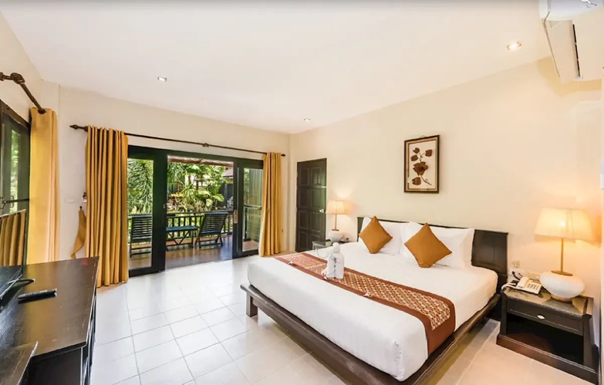 Dla max. 3 osób, Przestrzeń zewnętrzna: Taras, Kanały telewizji: Angielski, Telefon w pokoju, prysznic, Powierzchnia pokoju: ok. 45 - 55 m2, Dostawka: łóżko standardowe, Rodzaj podłogi: laminat, Sprzątanie codziennie, 1 sypialnia, Drzwi łączące między pokojami, Maksymalna liczba osób dorosłych: 3, Maksymalna liczba dzieci: 2, Widok na ogród, Liczba łazienek: 1, Liczba toalet: 1, Zestaw do parzenia kawy i herbaty, Klimatyzacja: Klimatyzacja indywidualnaDELUXE ROOM