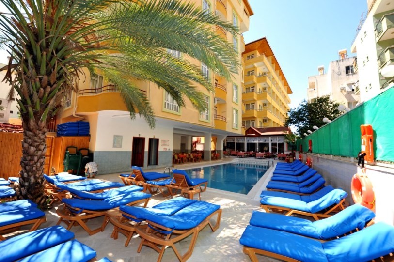 kanoe, banán, katamaran, padák, vodný skúter). Hostia môžu relaxovať pri bazéne alebo v tureckých kúpeľoch.